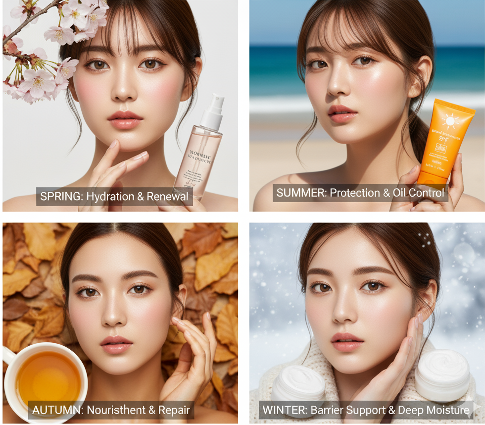 まず、季節ごとに肌がどのように変化するかを理解することが重要です。例えば、冬から春にかけては、寒暖差や花粉などで肌が敏感になりやすい時期です。夏は皮脂の分泌が増え、テカリや毛穴の詰まりが気になる方が多いでしょう。秋は夏の紫外線ダメージと湿度の低下により、乾燥が加速しやすい時期です。