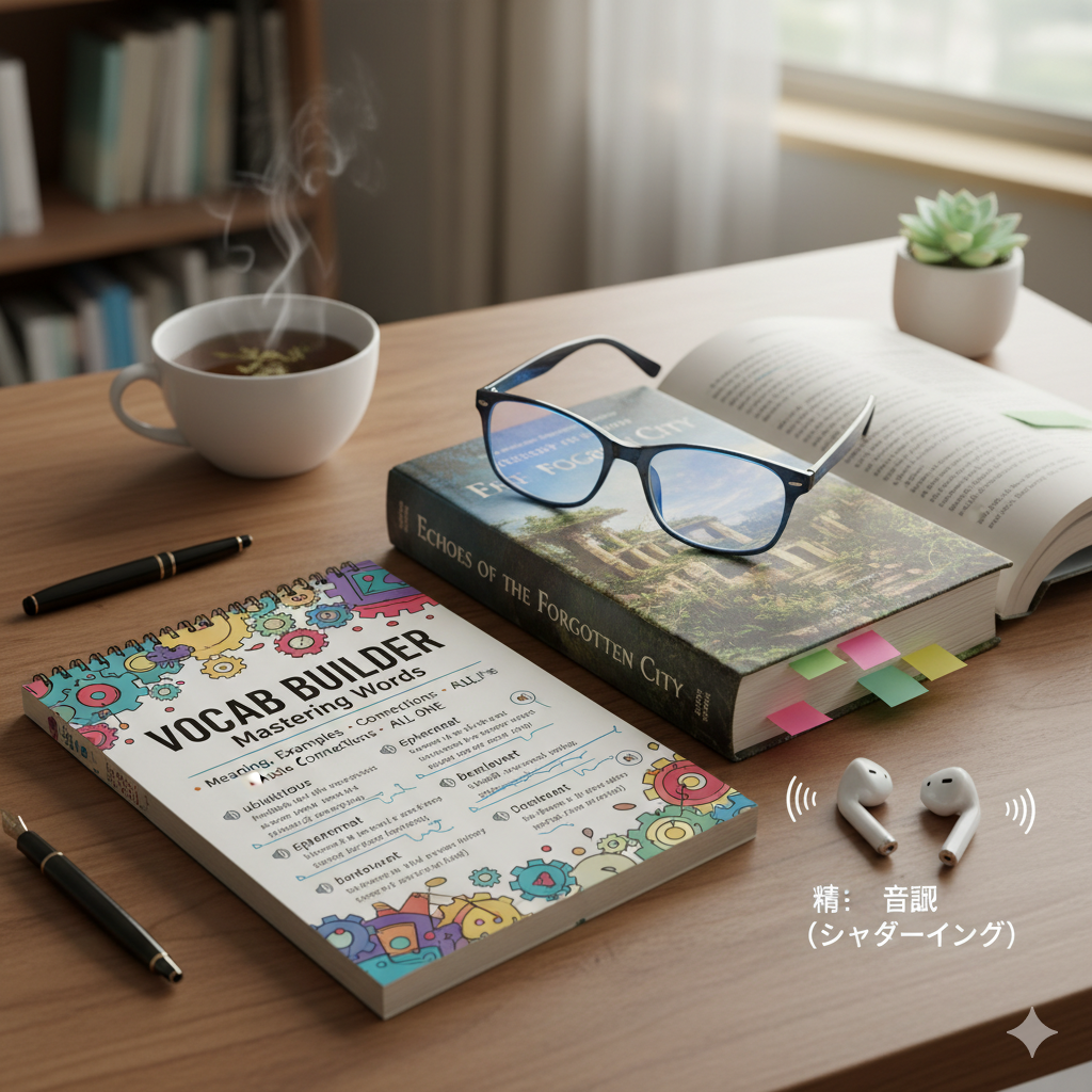 - インプット: 文法書、単語帳、リスニングアプリ(素材集)