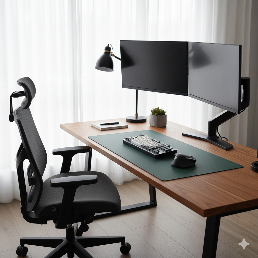 どんなデスク環境を目指すにしても、まずは土台となる基本アイテムから見直しましょう。以下の3点は、快適なデスクワークの基盤となります。