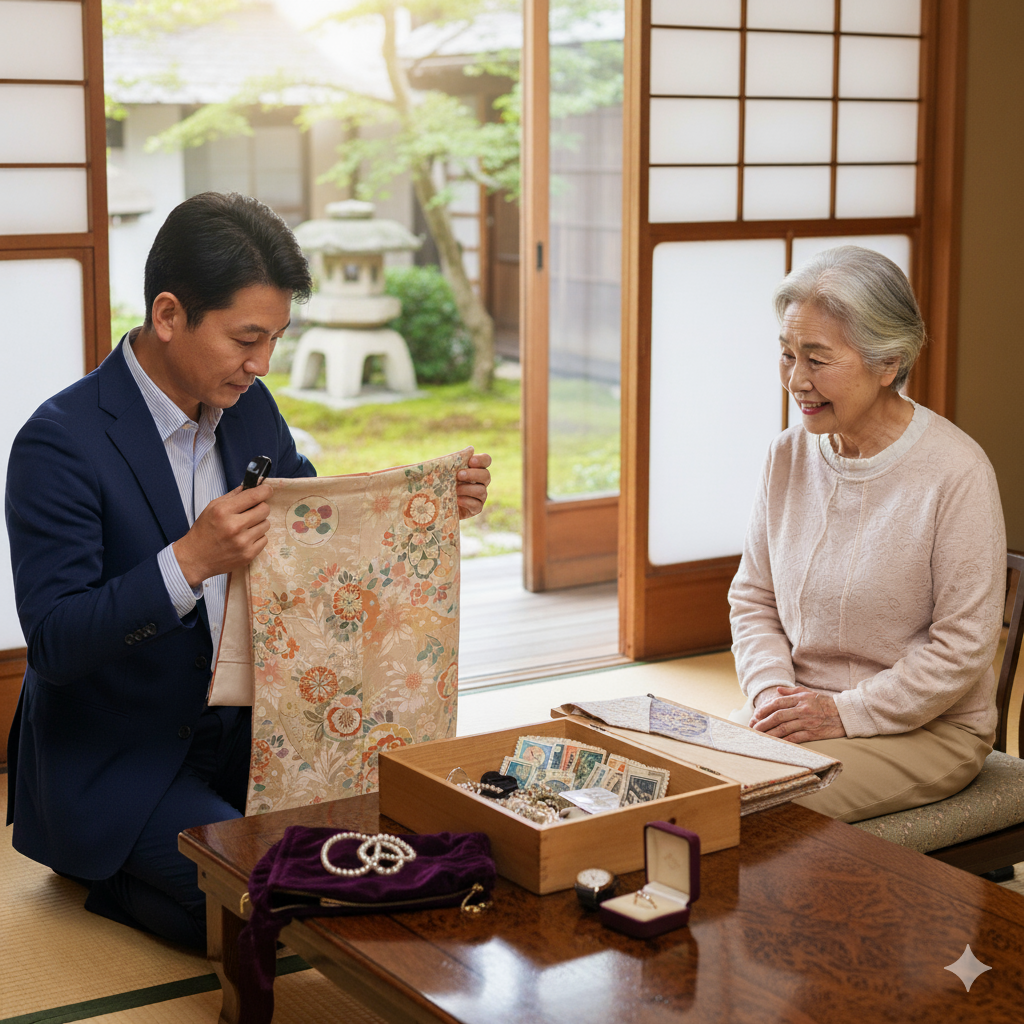 着物、ブランド品、骨董品など、幅広いジャンルをまとめて査定できるため、遺品整理や生前整理で品数が多くても、業者を分ける手間がありません。整理のプロとして、お客様の気持ちに寄り添った丁寧な対応も評価されています。