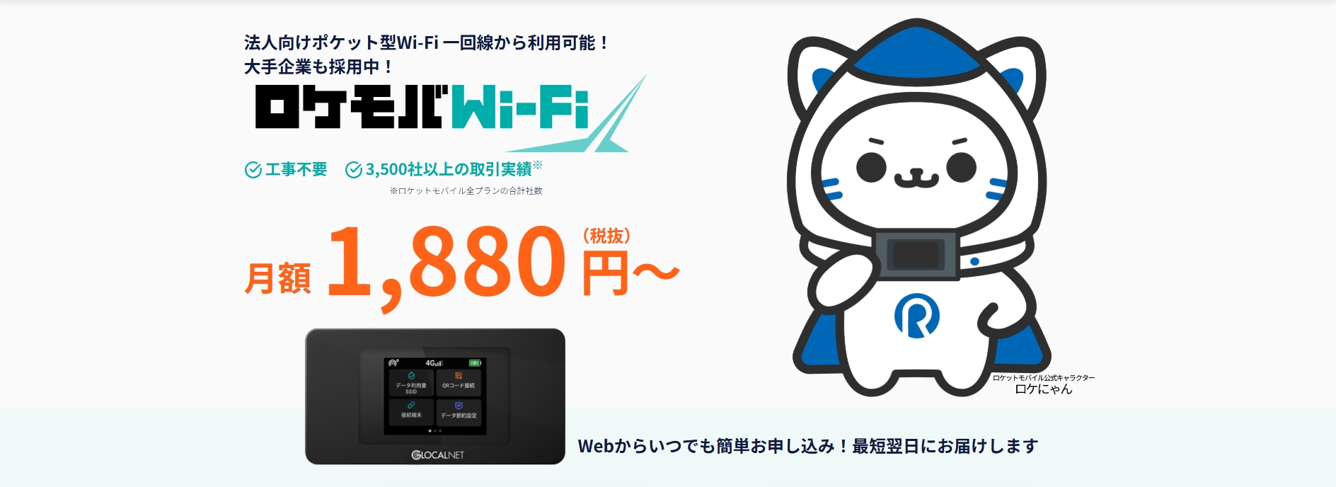 企業の皆様、**「ロケモバWi-Fi」**は、ビジネスのさまざまな「場所」や「状況」でのインターネット接続の課題を解決するために開発された、**法人専用のポケットWi-Fiサービス**です。