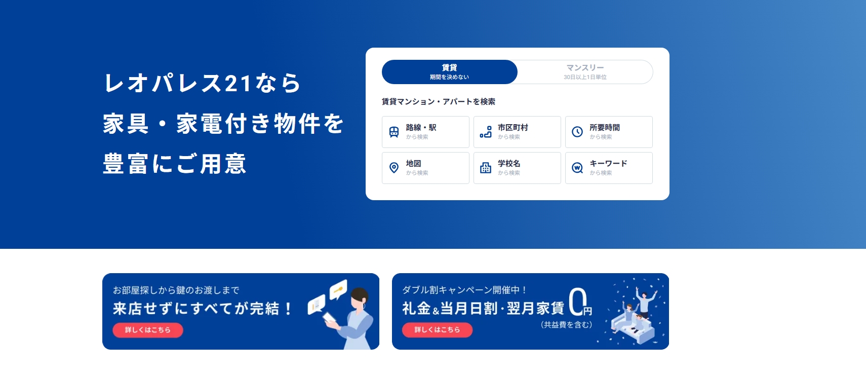 まずは公式サイトから、希望のエリアにあるお部屋をチェックしてみることをおすすめします。